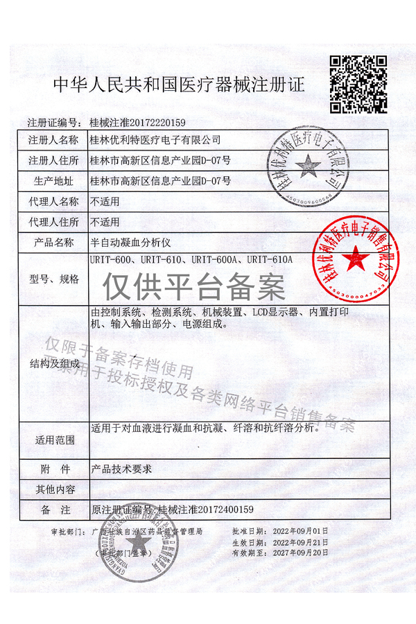 醫(yī)械網(wǎng)是一家提供優(yōu)利特雙通道凝血分析儀URIT-600價(jià)格、參數(shù)介紹等信息的展示平臺(tái),為您提供優(yōu)質(zhì)的優(yōu)利特雙通道凝血分析儀URIT-600產(chǎn)品,上海晚成醫(yī)療器械有限公司專(zhuān)注于各類(lèi)醫(yī)療器械批發(fā)及零售,聯(lián)系電話:400-006-1850。